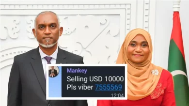 ޑޮލަރުގެ ބްލެކް މާކެޓް ހިންގާ ވައިބާރ ގްރޫޕް ތަކުގައި މުއިއްޒު އާއި ސާޖިދާ ދަނީ 20.14ގެ ރޭޓުން އާންމުނަށް ޑޮލަރު ވިއްކަމުން ކަން ދިޔަވަރު ނޫހަށް ކަށަވަރު ކުރެވިއްޖެއެވެ. ކަޅު ބާޒާރުގައި ޑޮލަރު ވިއްކުމަކީ ޤާނޫނާއި ޚިލާފު ކަމެކެވެ.